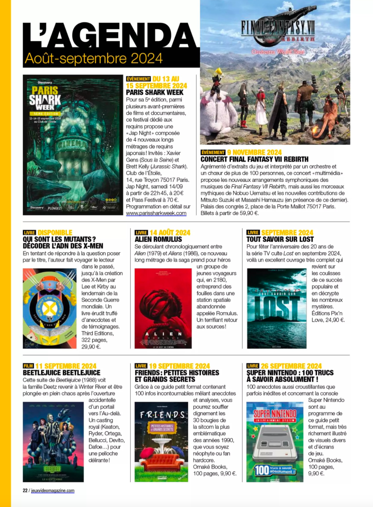 Août 2024 : annonce sur la page L’Agenda de Jeux Vidéo Magazine #284.